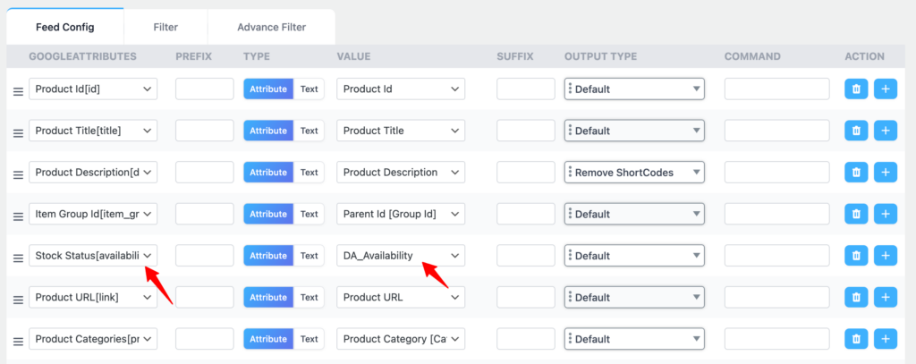 Dynamic Attributes let you remap these values per channel without touching your WooCommerce store data. You define the mapping once; CTX Feed applies it on every feed generation.