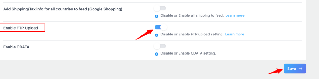 That’s all you need to do here. This switch turns the feature on, so the FTP fields become available when you edit a feed.