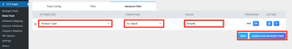 CTX Feed Pro lets you precisely control which product types appear in your WooCommerce product feed. Using the Advanced Filter, you can include or exclude specific product types — such as Simple, Variable, or Grouped products — with just a few settings.