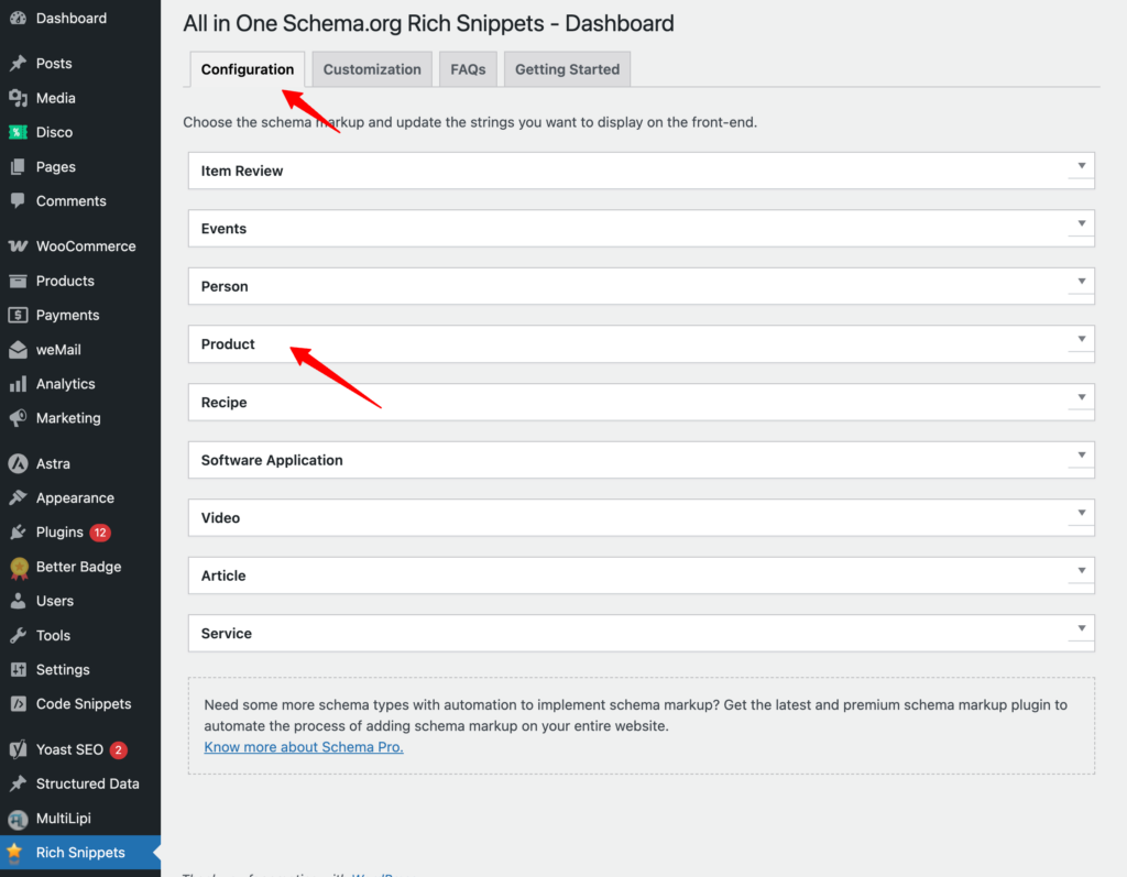 Step 3: Go to Rich Snippets → Configuration and set the default snippet type for products to “Product”.